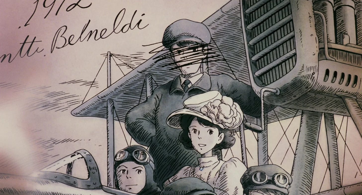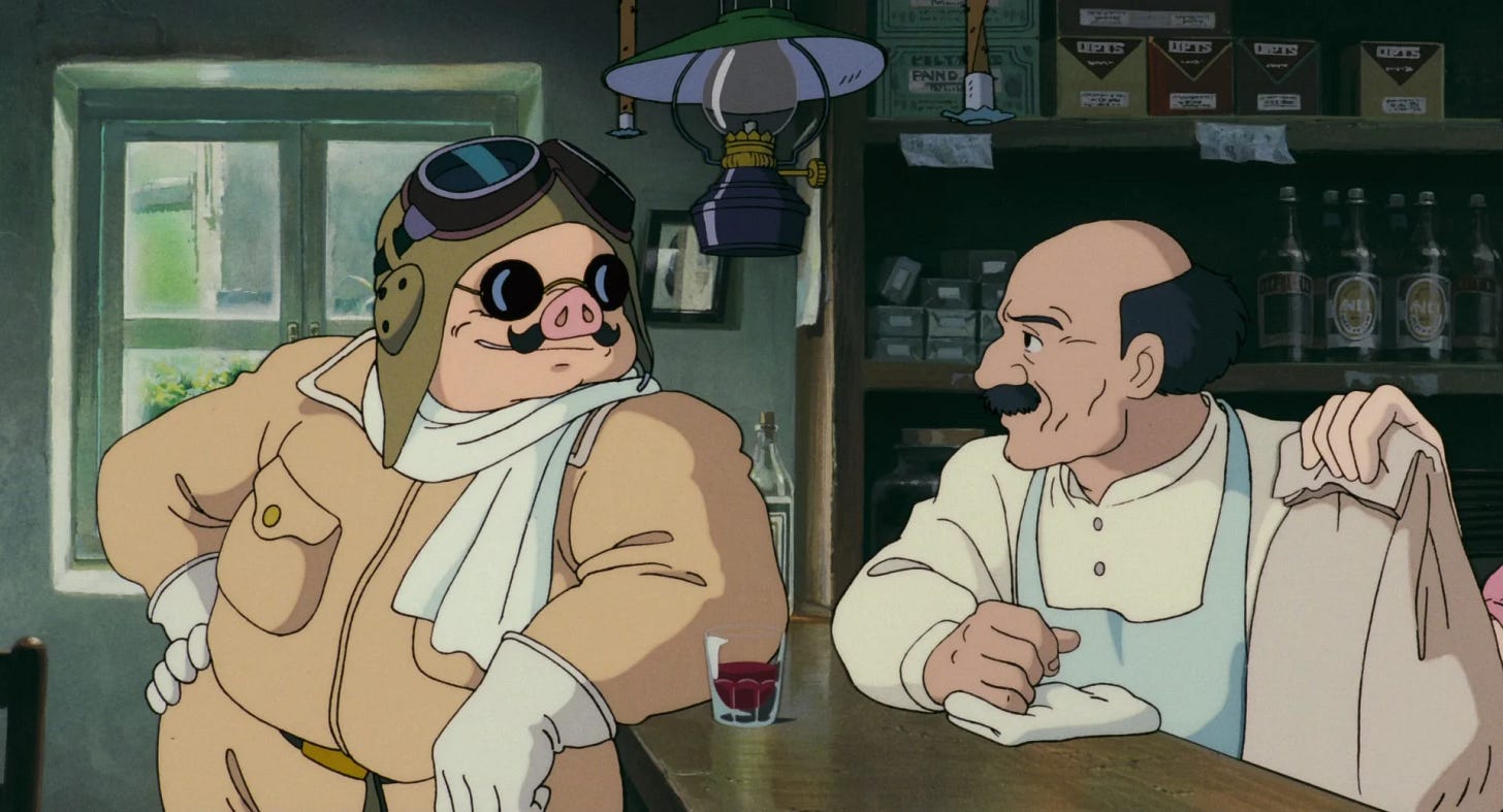 Porco already knows he doesn’t want to be in the next war. He doesn’t want to be in the future, so he doesn’t fit into the present. What he does want to do is fly—even though skills like his, and planes like his, are meant for war. So the thing he loves the most is linked in a way he can’t undo with what he does not want to do again. Porco has lost his place in the world.
