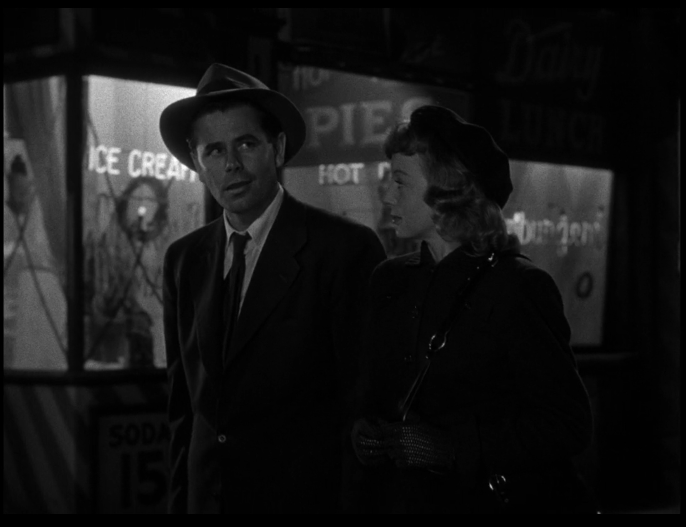 There’s a third crucial character in this movie: Harry Byrd, a reporter played John Ireland. He shows up late, has only a few scenes, and almost doesn’t feel real, because most of his significant conversations are one on one with Joe. He doesn’t care about anything but getting a good story and he knows somebody in the police force must be covering for the mob. He just wants the name so that he can get a big story. He doesn’t care about anything else. Even though he presents himself as on Joe’s side, Joe reacts to him with an antipathy so severe it does feel—again—as if this guy cannot possibly be real.