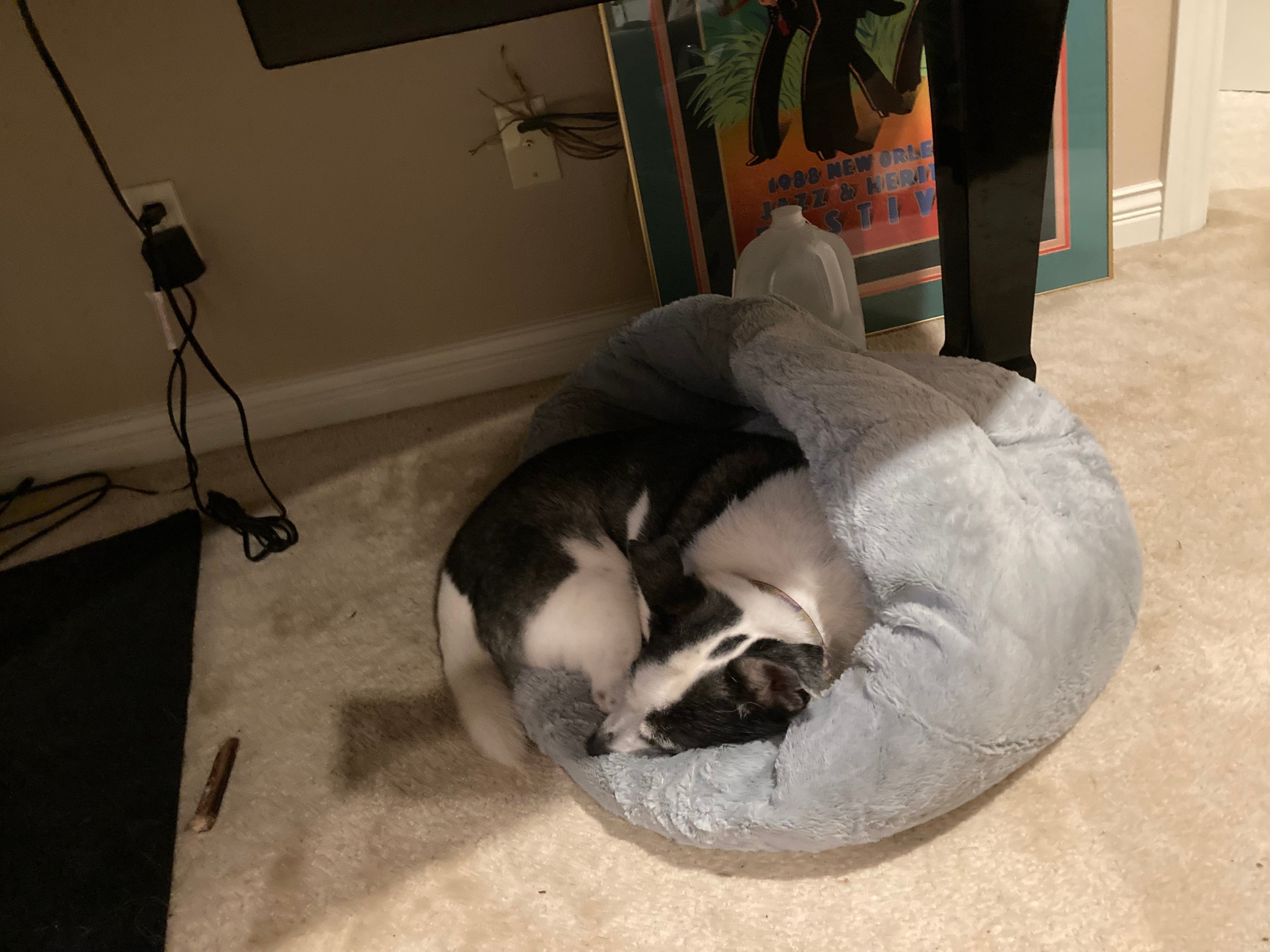 Buster, who hates above all the other things he hates the third dog of the household (not featuring in this story),4 also recently decided to move into the basement with me and Boswell. And I do mean that Buster decided to do this. When I brought him down into the basement before, just so he could get a break from the other dog, he would bark at me and knock things over until I let him back upstairs. But he’s had it with sharing space with his most hated enemy, so one day he just… came downstairs… and never left.