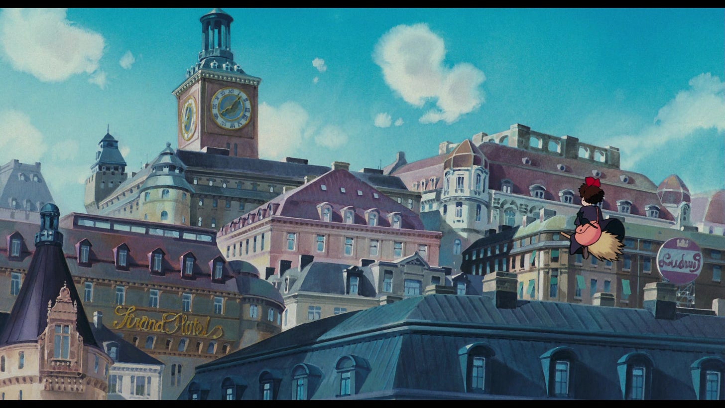 It’s worth mentioning that Kiki’s Delivery Service is adapted from a book by Eiko Kadono and that in the book the entire final act of the movie does not happen.1 We are told that she will lose Jiji one day as a part of growing up and finding adult love: